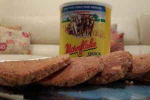 מצרכים 1 כוס שיבולת שועל 1 כוס קמח מלא תופח 1/2 כוס סוכר או דבש 1/2 כוס שמן 100 גרם