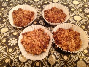 רכיבים: 300 גרם ממגוון אגוזים טבעיים 300 גרם תמרים 1/4 כפית קינמון טחון קורט אגוז מוסקט 1/4 כוס שוקולד מריר
